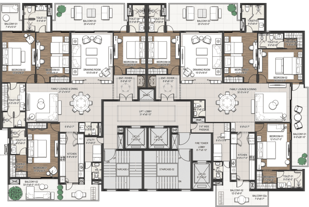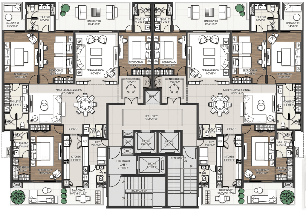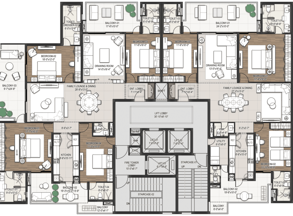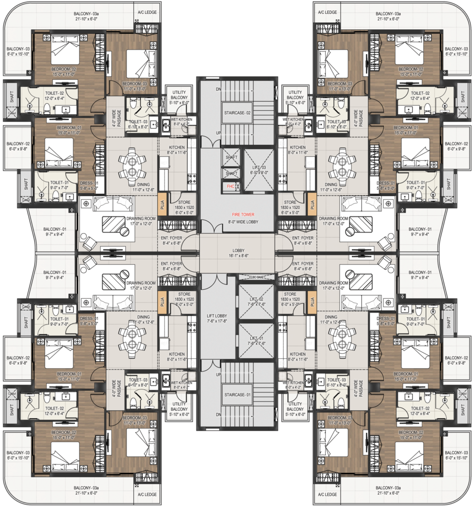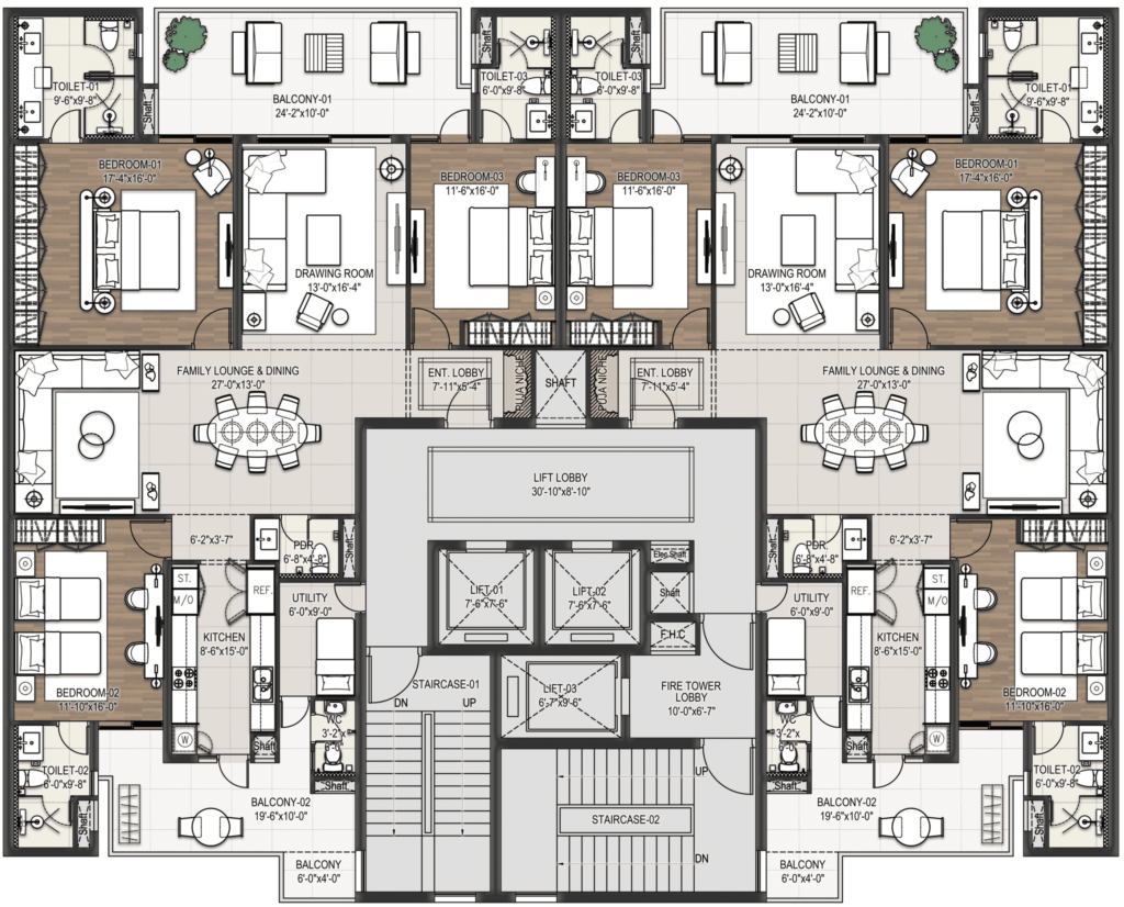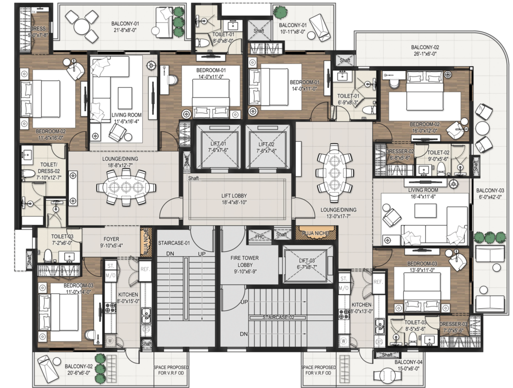 All flats include energy-efficient VRV air-conditioning systems for year-round comfort.