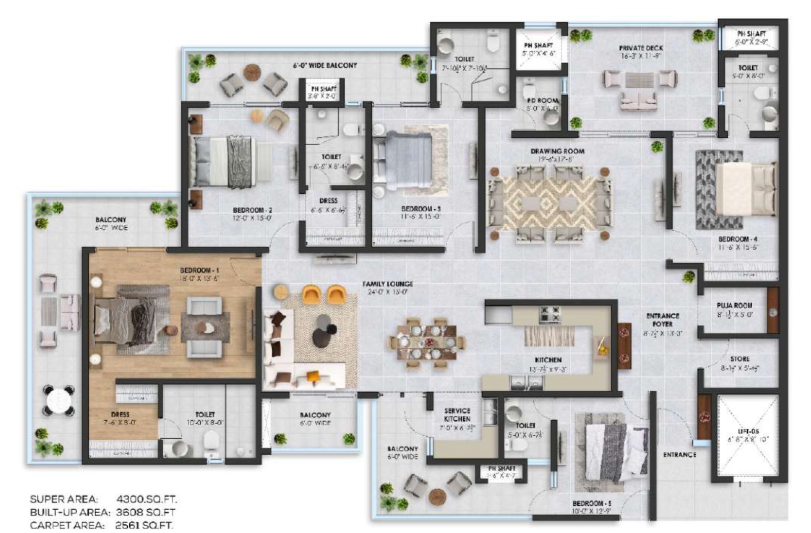 (5B + 6 WR + STORE + POOJA ROOM)